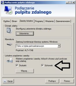 (opcje -> zasoby lokalne -> lokalne urządzenia i zasoby -> schowek powinien być zaznaczony).